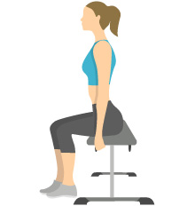 Сядьте на стілець з прямою спиною, зігніть ноги під кутом 90 градусів, при цьому п’яти і носки повинні бути зсунутими, коліна зведеними разом. Потім починайте відривати носки від підлоги так, щоб почали напружуватися м’язи литок, стоп і пальців. Потім слід повторити вправу, але тільки піднімати вже п’яти замість носок.